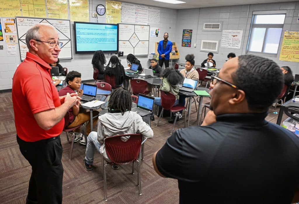 Roy Bibb, the president of MidSouth Community Federal Credit Union and a member of the district’s ESPLOST advisory committee, followed Weaver Middle Principal Dominique Nichols for the afternoon.