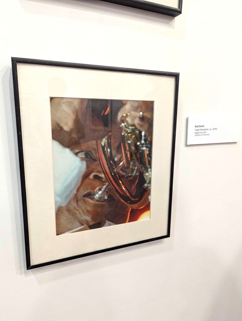 He noted another photograph in the exhibit, a close shot of Hugh Masekela with a trumpet to his lips, the camera angled upward to capture the concentrated expression on his face.