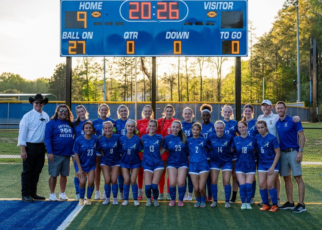 Jones — the daughter of head coach Robby Jones — was just one piece of a dominant offensive performance for the ACE Gryphons, as she netted all three of her goals in the second half as ACE (13-1 overall, 6-0 in region) romped to a 9-0 win over East Laurens (8-8, 5-3) at home to win its sixth consecutive region championship.