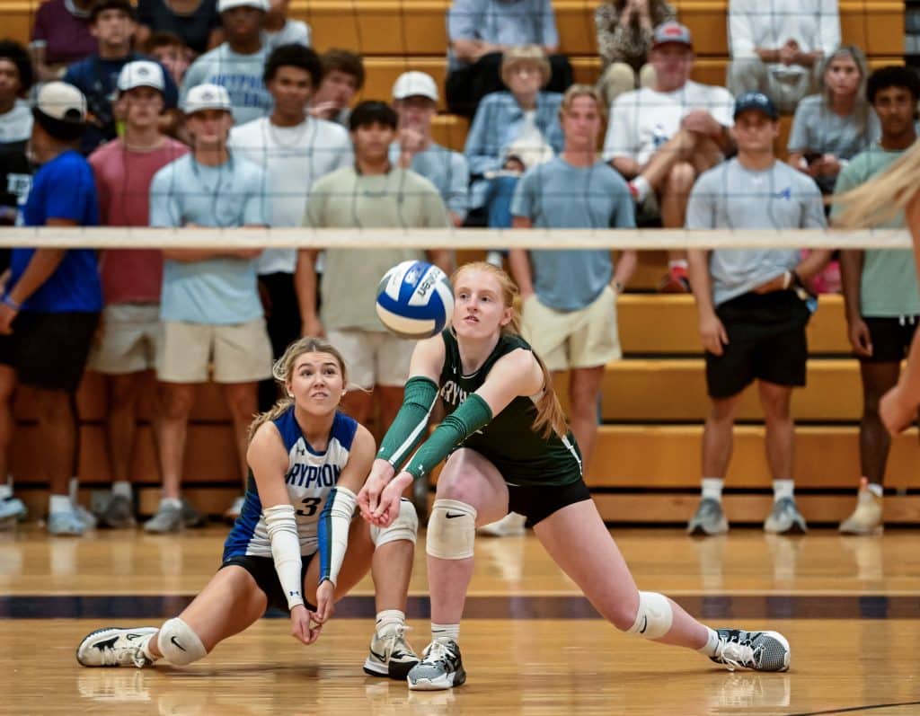 The Hurricanes were in a big hole in the second set, trailing 12-4 before clicking better in all phases. Different Jasper County players came up with digs and saves to keep points alive long enough to win them.