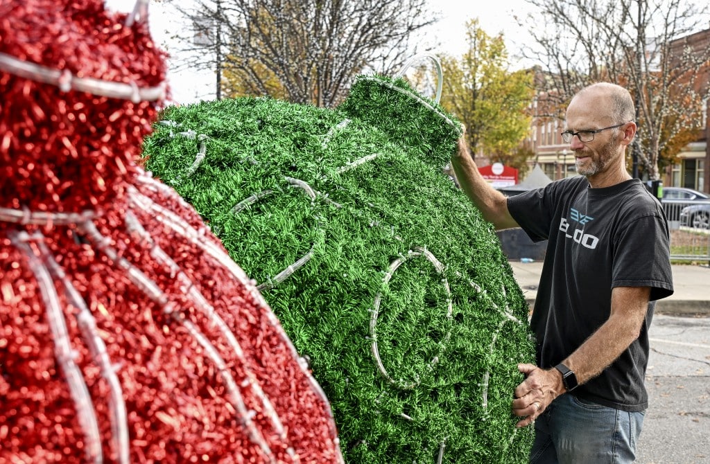 Last year, they stayed at Hotel 45 and walked to Bryan’s coffee shop to stand in line like everyone else. They were waiting to have their photograph taken inside the giant ornament at the corner of Poplar and Third Streets when a young man in front of them dropped to a knee and proposed to his girlfriend.
