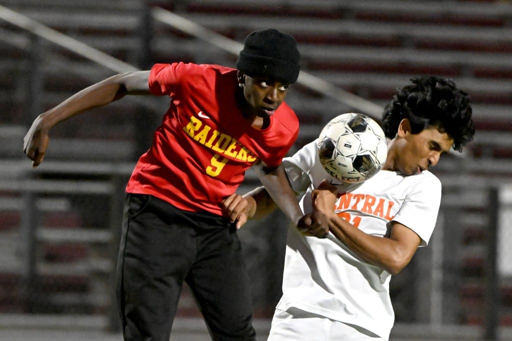 Central’s back line, led by captain Ellis Veal, continued its scorching defense in the second half, although Northeast did get its best look of the night with about 30 minutes remaining. The Raiders got a corner kick that team captain Jaden Travet nearly netted with a neat bending strike, but Central keeper Patrick Henry smothered it.