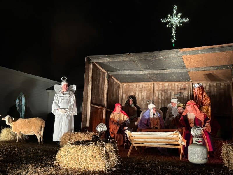 The Macon tradition features lights, a large cross and live nativity scenes.