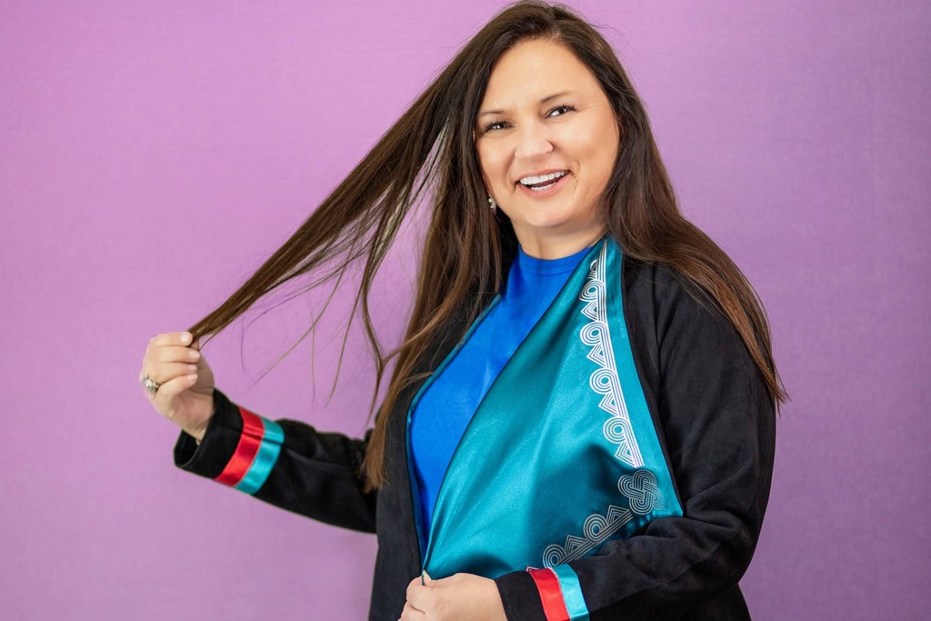 “It’s so special to bring my Mvskoke art to the homelands of Macon,” she said. “I’ve spent years researching and learning about the textile and pottery designs from pre-removal and worked out ways to incorporate those images into a modern aesthetic. I absolutely love the stories behind the images. My way of telling stories is through my wearable art. I hope I’m able to spark interest in our history but also I want to let people know we’re still here and we’re thriving.”