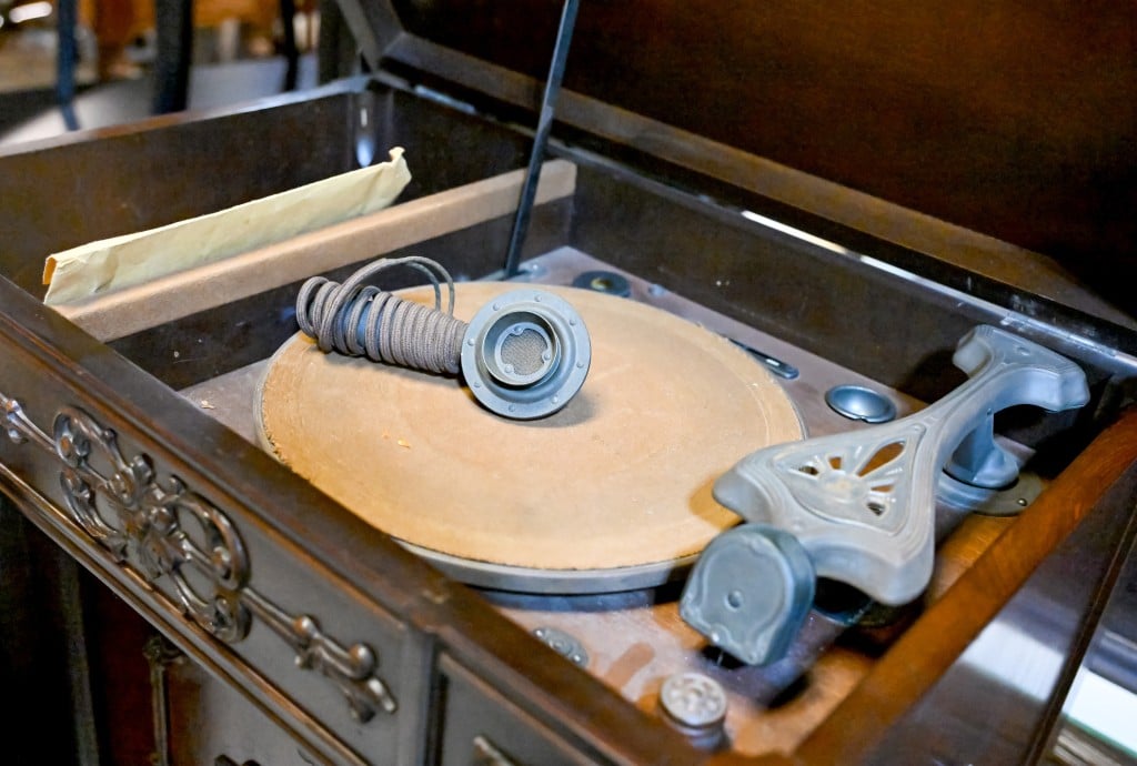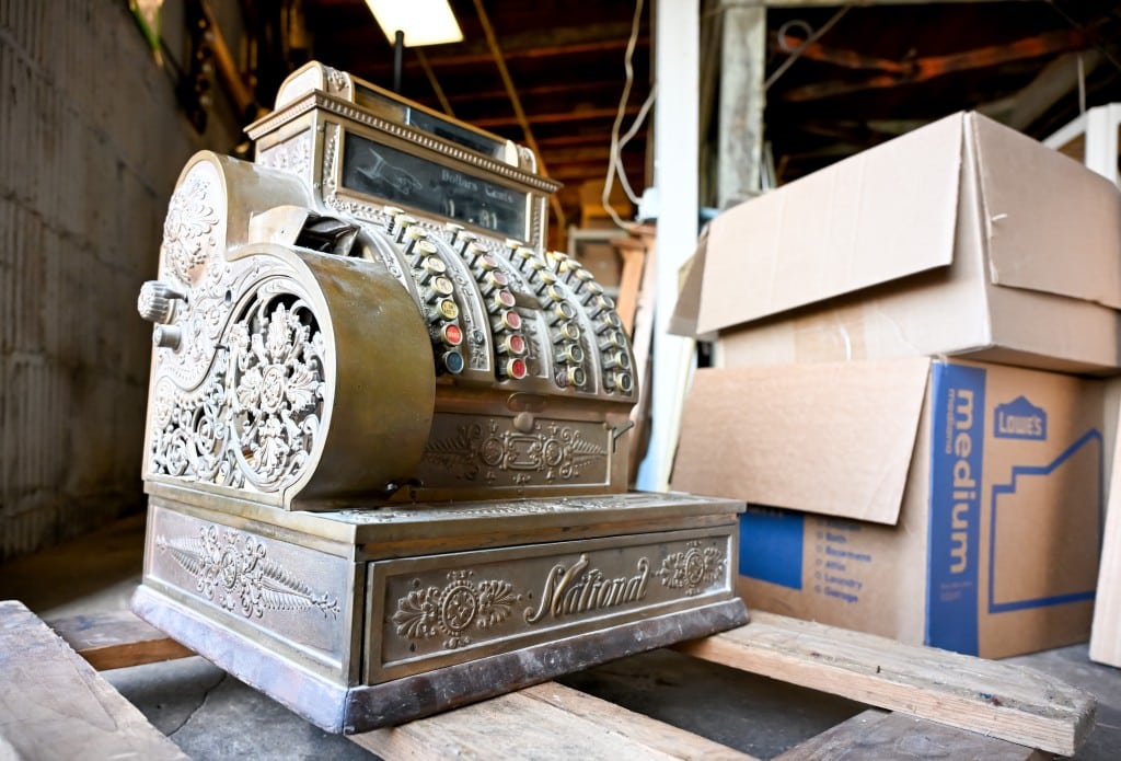 With its detailed bronze-colored metalwork, buttons and lever, the register box offers an analogue glimpse into the past. Brown noted that the market often receives unique donations that can be challenging to price and require some research. The individual who donated the antique cash register also donated several old victrolas. Photo by Jason Vorhees.