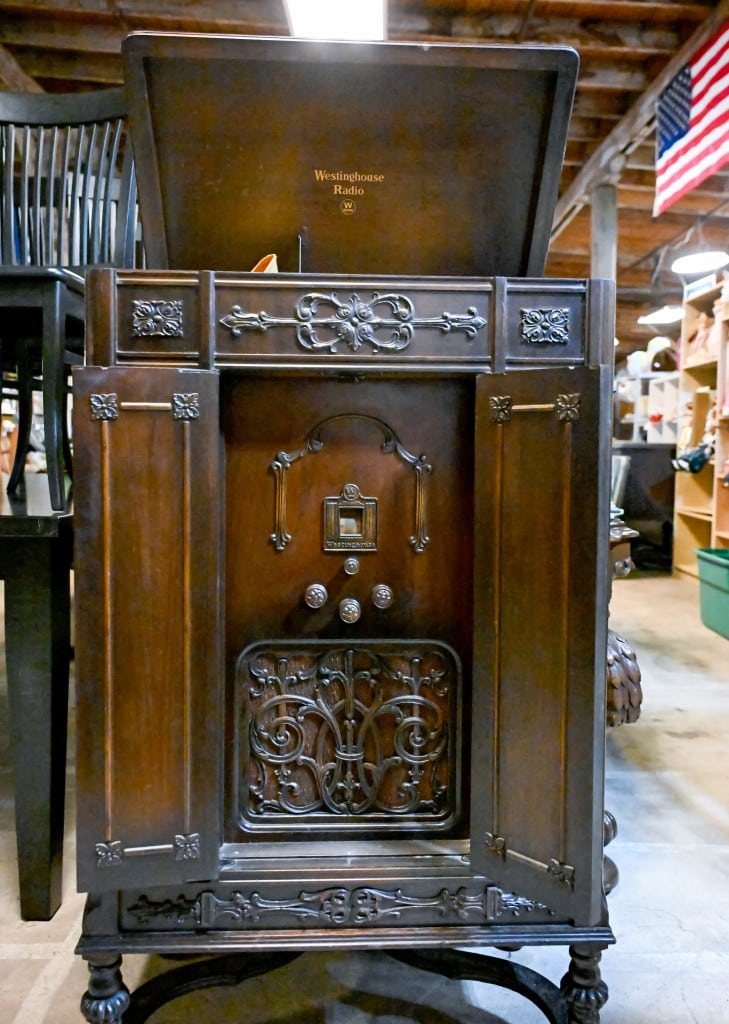 Each year brings different treasures, depending on what people donate to the market, Brown said. This year, they received several antique Victrolas, which are horn phonographs used to play music. One Westinghouse Radio dates back nearly 100 years. It includes detailed woodworking, original wiring and can record on a 78 revolutions per minute record. Photo by Jason Vorhees.