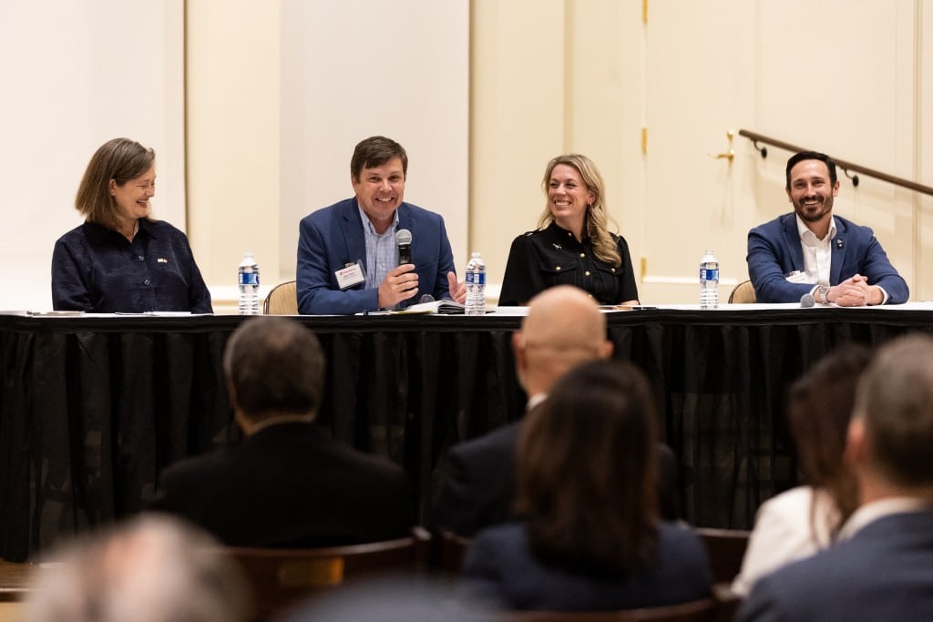 Global Atlanta Managing Editor Trevor Williams moderated the four-person panel including Belgian Consul General Katherine Raeymaekers, Rivian Automotive Director of Corporate Affairs Andrew Capezzuto, Fitzgerald and Ben Hill County Development Authority Executive Director Jason Dunn and Georgia Aerospace & Defense Alliance Executive Director Ember Bentley.