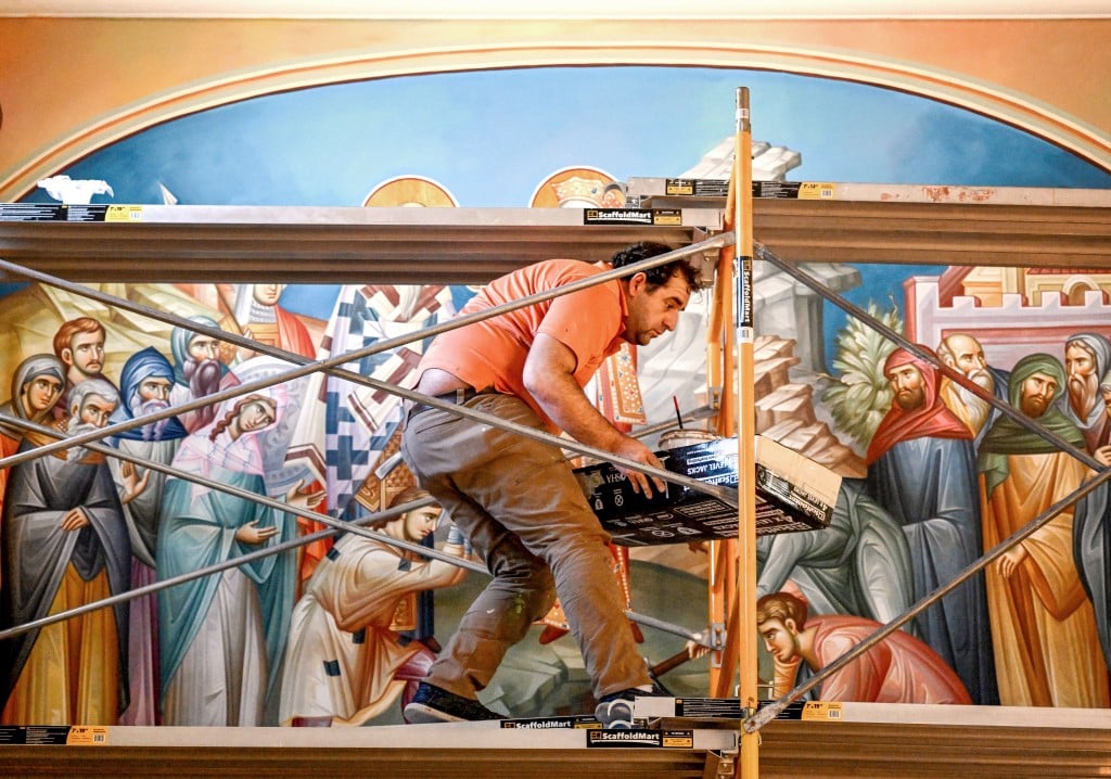 Greek iconographer Aristidis Kovaci and his team will complete iconography in the Holy Cross Greek Orthodox Church on First Street by the end of this week.