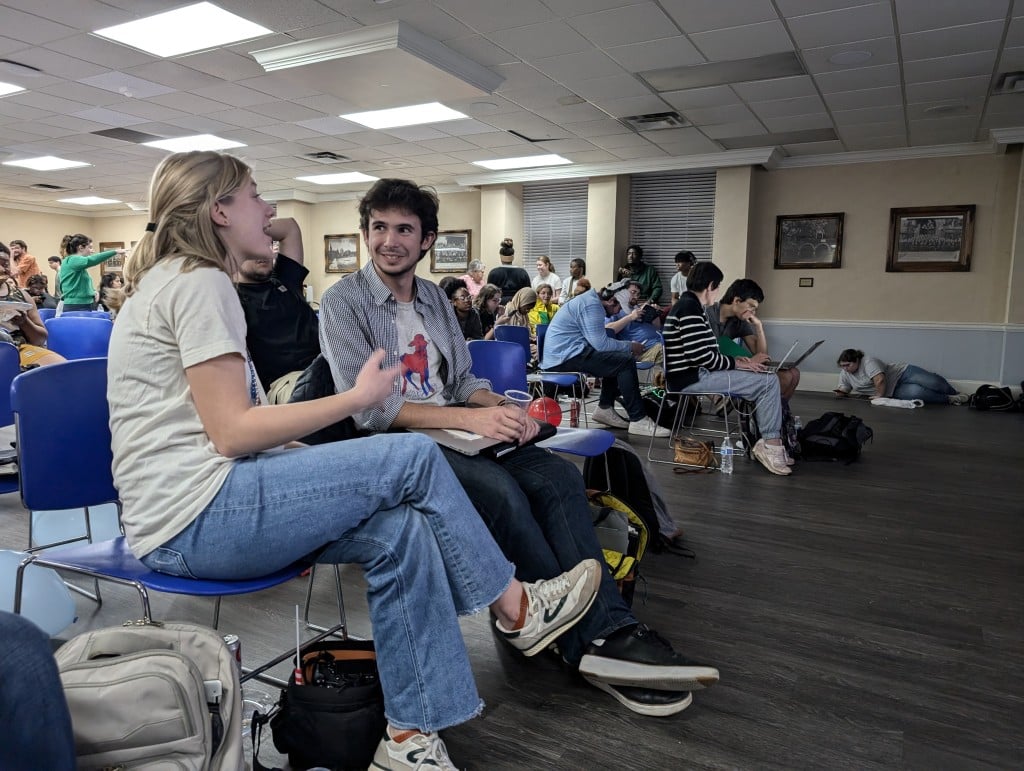 The gathering started with a speech from Mercer’s associate professor of political science, Benjamin Hoyt, who asked that students respect their schoolmates and have patience with the incoming votes.