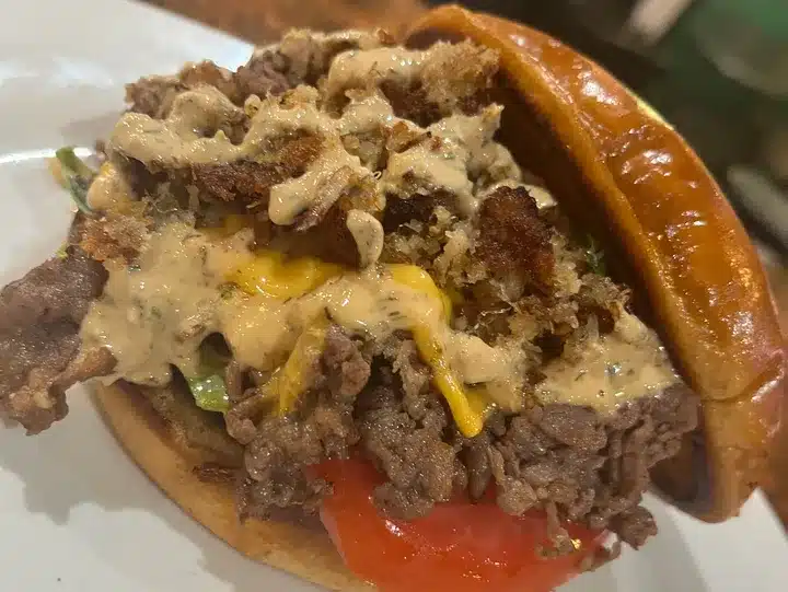 Cuban-Style Frita, All-Beef Patty, Beef Tallow Caramelized Onions, Potato Sticks, Cheese & BBQ Comeback Sauce