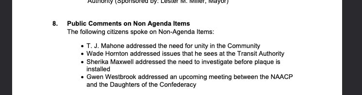 L.J. Malone, who is listed as “T.J. Mahone” in county notes, said he did more than “addressed the need for unity in the community,” as indicated in the meeting minutes.