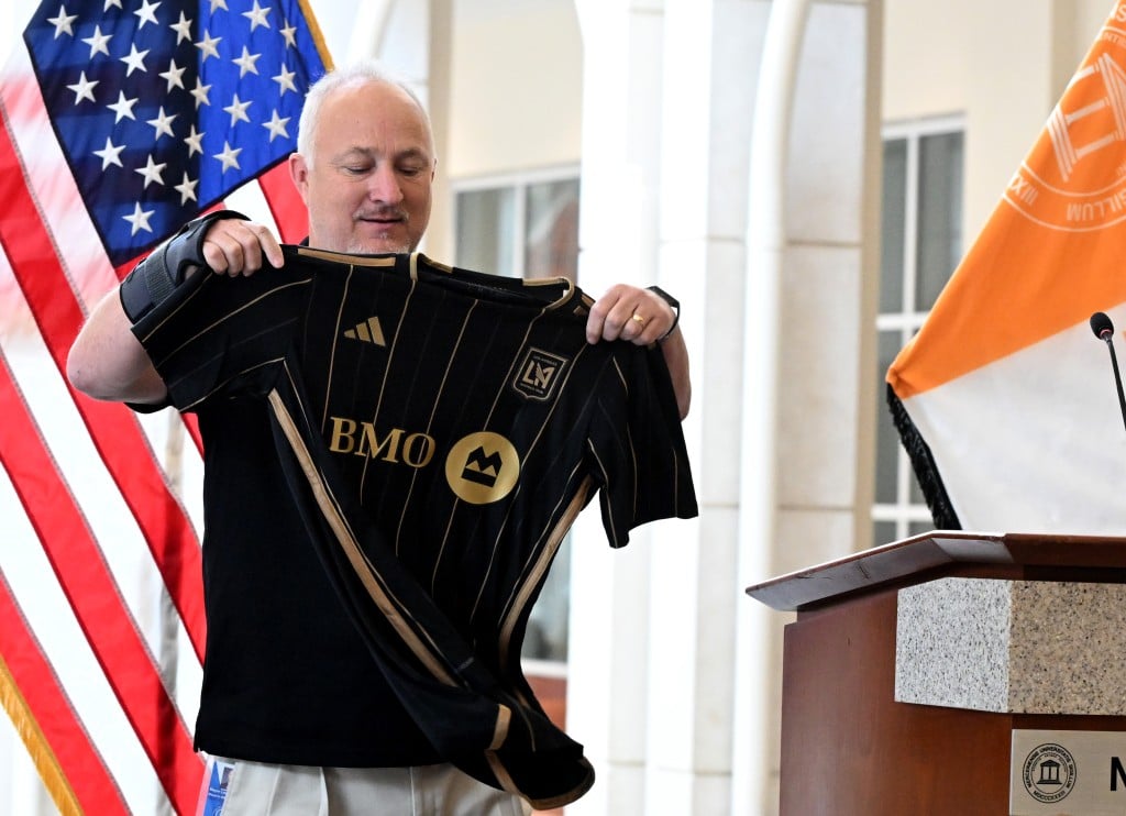 “Join me in standing shoulder-to-shoulder with the Los Angeles Football Club,” Miller said as he showed off the kit. “Macon and Mercer University have been picked to host them as their official practice facility in the community. This is our team, this is their time.”