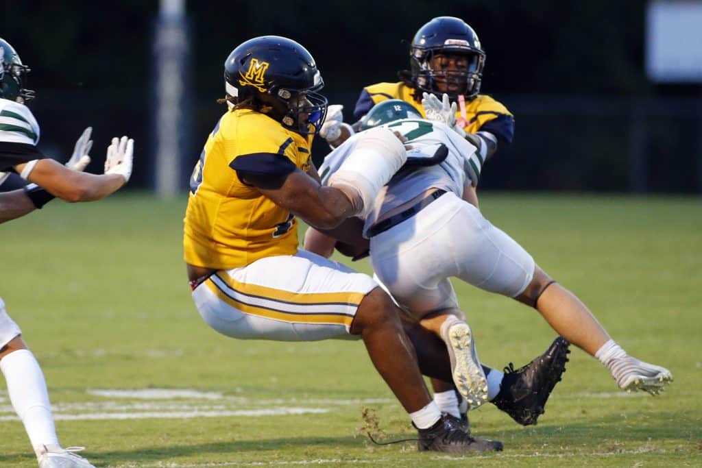 The Knights took over and began to move the ball downfield, aided by penalties on Mount de Sales. The Cavaliers defense, particularly the standout play of Bryson Fletcher, who registered a key sack, managed to stop Calvary’s progress and ended the quarter with the score still tied at zero.