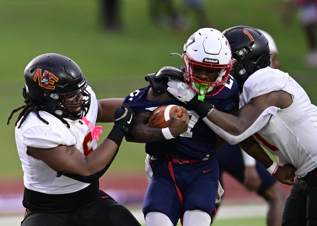 For the portion of the game that was played, Northeast’s offense was efficient. Senior linebacker Tailen Sampson, already effective on defense, was even more valuable as a running back. He gashed the Patriots for chunk plays and Jordan Wiggins, son of head coach Jeremy, was accurate at quarterback to make most of the Raiders’ offensive drives a breeze.