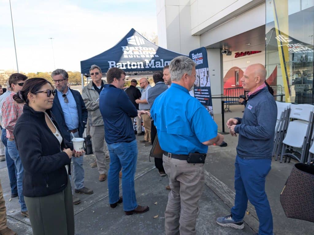 Project managers with Sheridan Construction and Barton Malow vetted dozens of prospective vendors and subcontractors outside the Coliseum Tuesday morning.