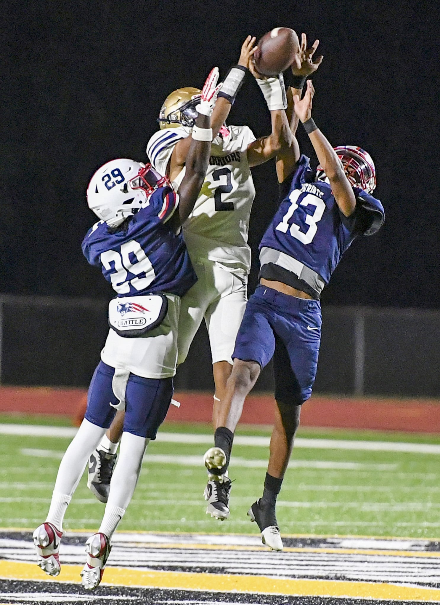 Southwest receiver Jamarea Watkins (18) hauls in a deep pass in the fourth quarter of the Patriots’ win over Jefferson County Friday night.