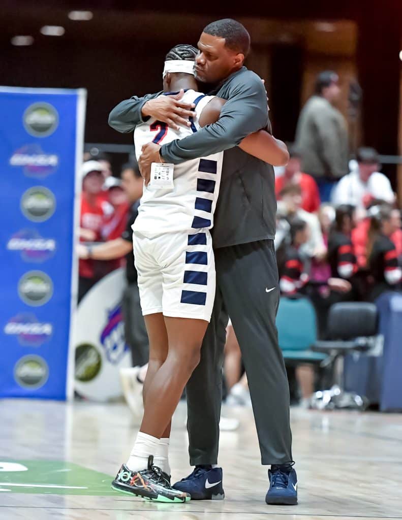 “One kid dives on the floor like he’s taught to do every single day, taps the ball to his teammate and (the ref) calls a foul. That was an atrocious call when we were down by 1 point,” Hardnett said. “I don’t care what anybody feels about it, they can do whatever they want to me. They can scream human error. We’re human too. … It turned the game today and took a state championship from these young men.”