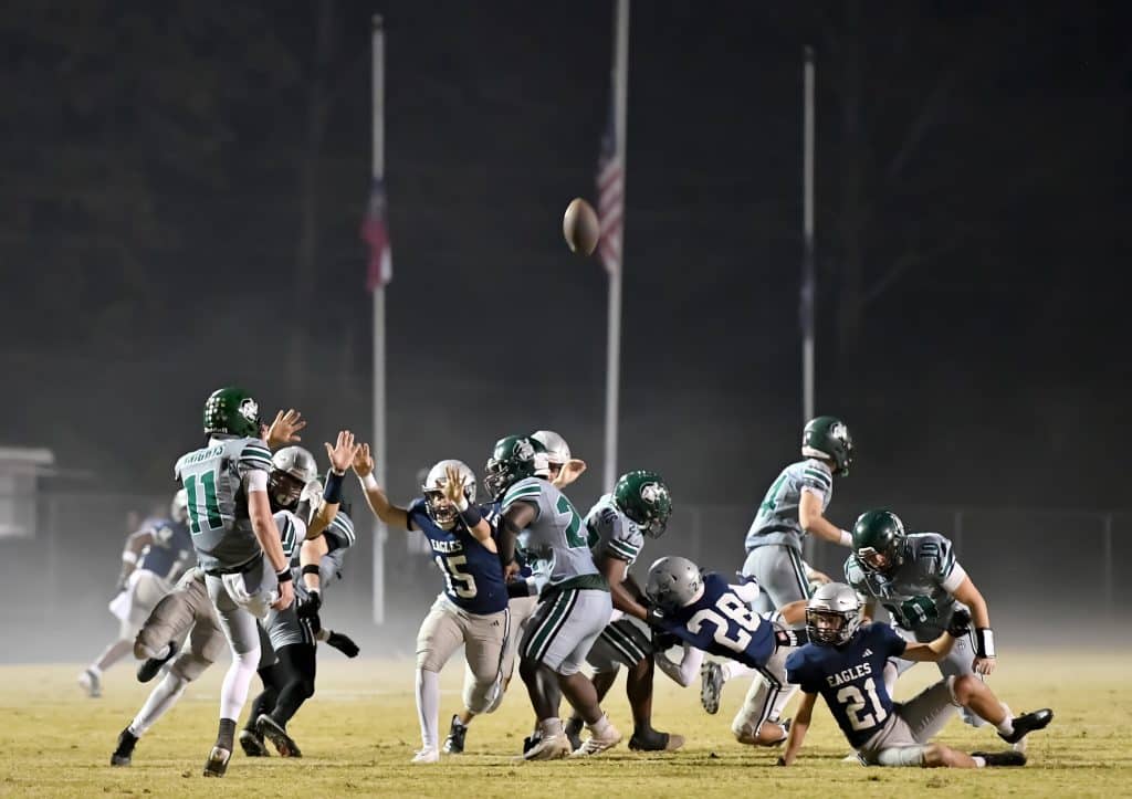 Almost as impressive was the Eagles’ defense, which shut down the Knights almost entirely until garbage time. That was thanks in part to Stratford pinning Calvary Christian deep multiple times early with great punts by George Dunn, one of which led to a safety that made it 2-0 early.