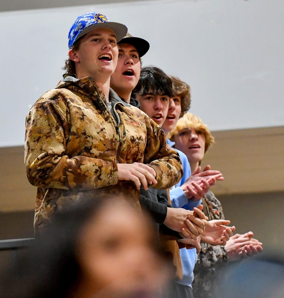Tattnall students cheer on the Trojans Annamary during their 57-25 loss to the St. Anne-Pacelli Friday night. Jason Vorhees / The Melody